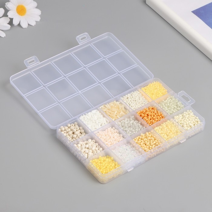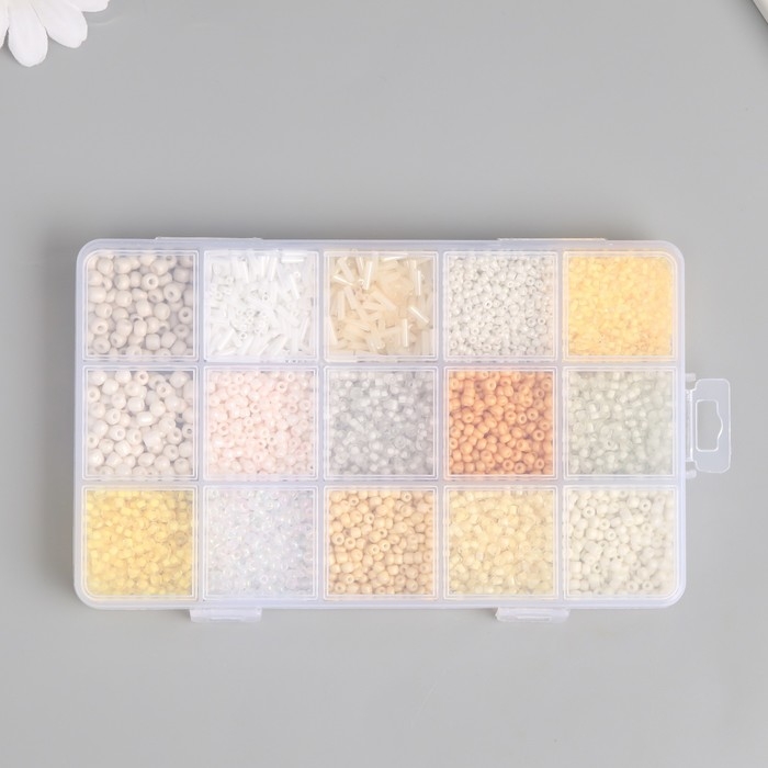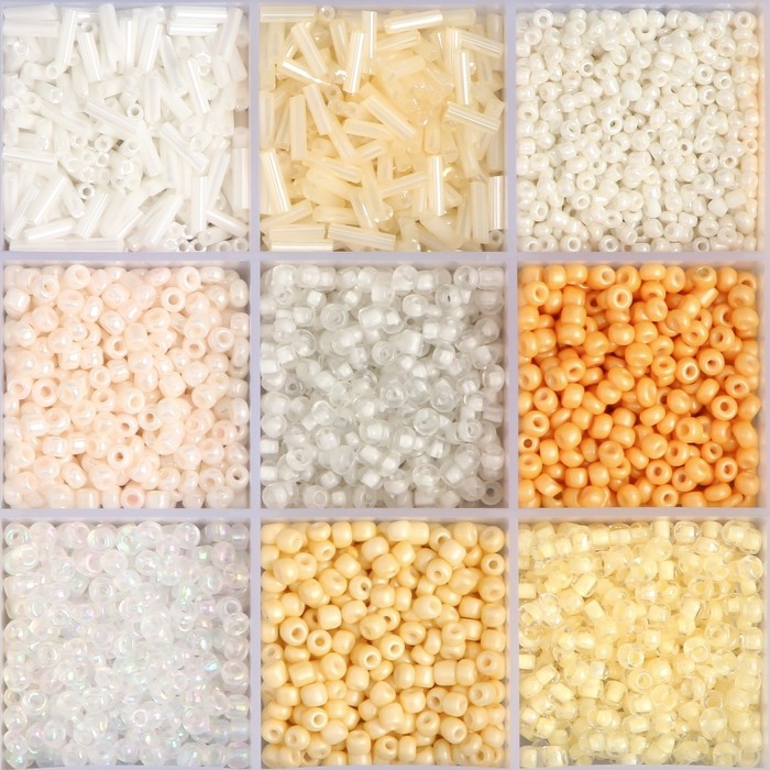 Бисер стекло 6/0, 8/0, 12/0 в шкатулке "Телесный" стеклярус 15,5х9,5х1,6 см