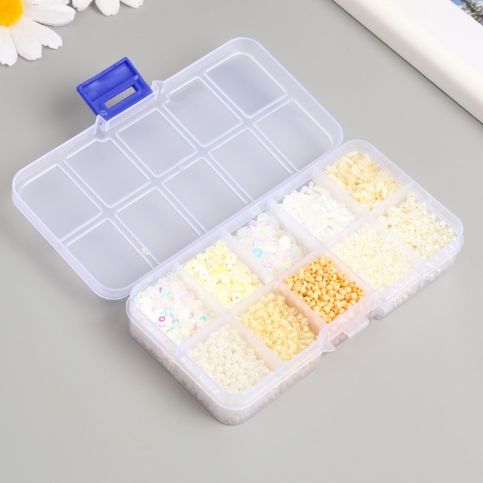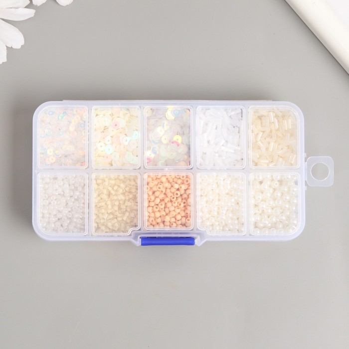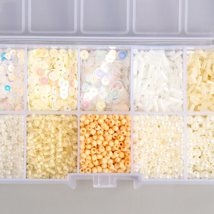 Бисер стекло 8/0, 12/0 в шкатулке "Телесный" бусины, стеклярус и пайетки 13х6,5х2,3 см