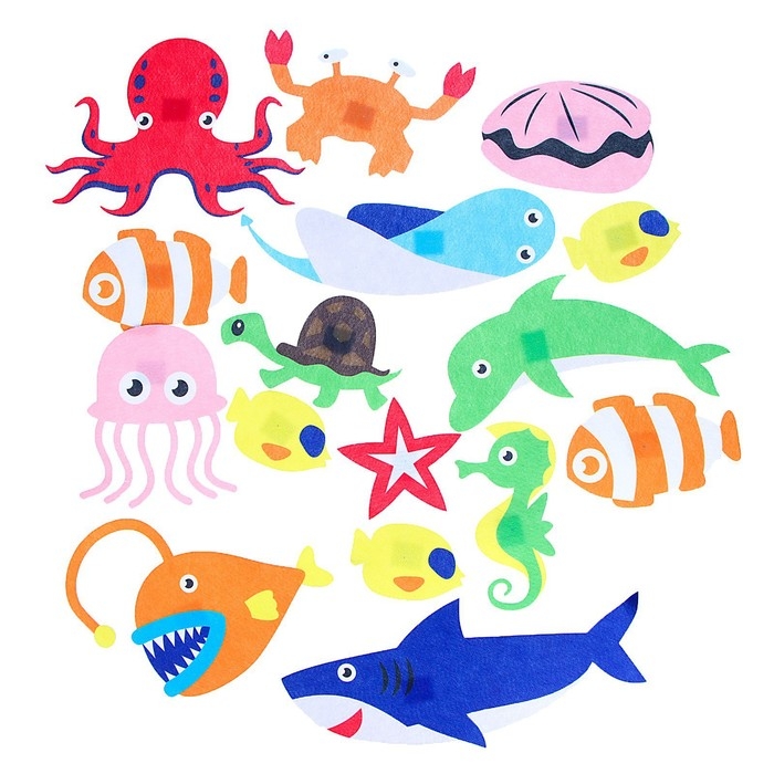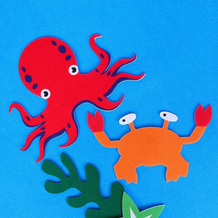 Бизиборд на стену из фетра «Морские жители» 25 деталей на липучке, размер поля — 105 × 75 см