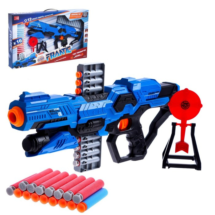 Бластер Frantic, стреляет мягкими пулями, в комплекте с мишенью, цвет синий