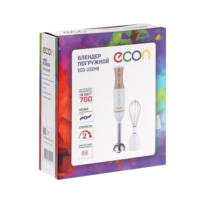 Блендер Econ ECO-232HB, погружной, 700 Вт, 2 скорости, 2 насадки, бело-бежевый