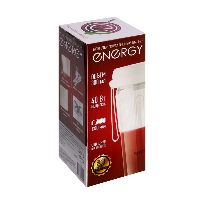 Блендер Energy EN-149, портативный, 40 Вт, 0.3 л, 18000 об/мин, белый