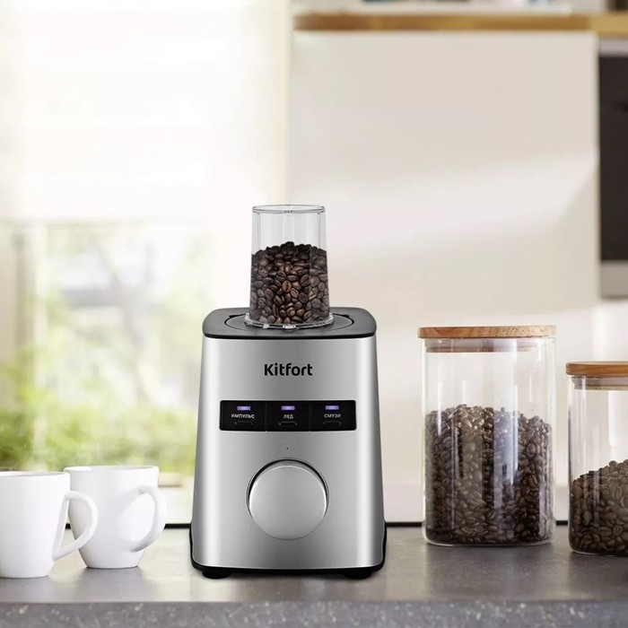 Блендер Kitfort КТ-3075, стационарный, 800 Вт, 1.5/0.6/0.15 л, рег/скорости, серебр.-чёрный