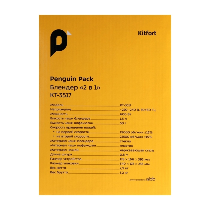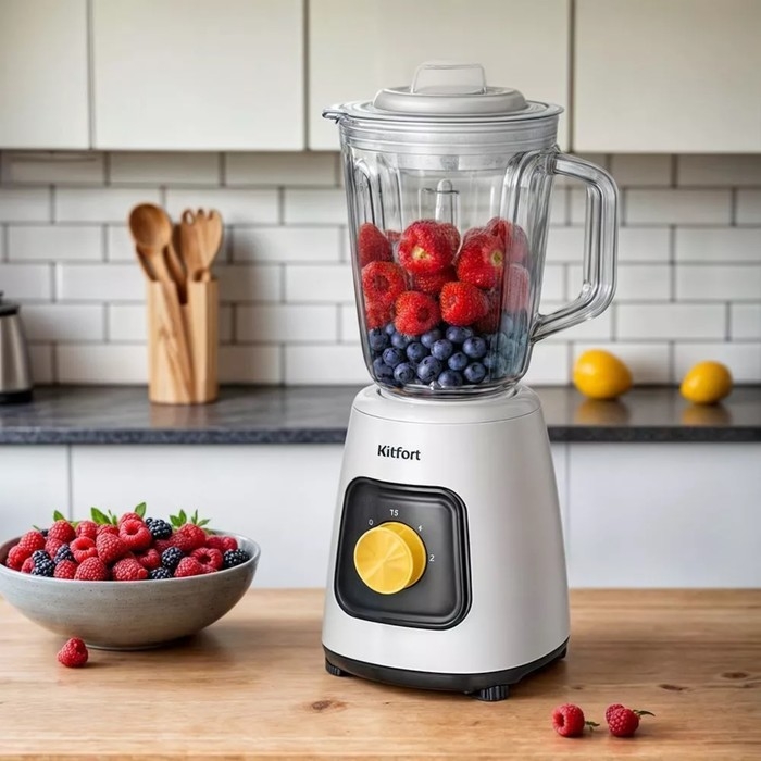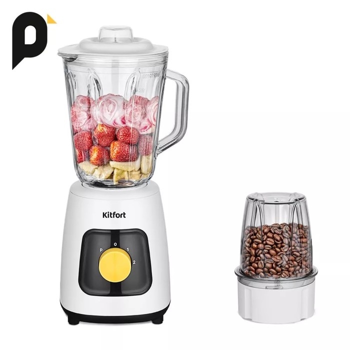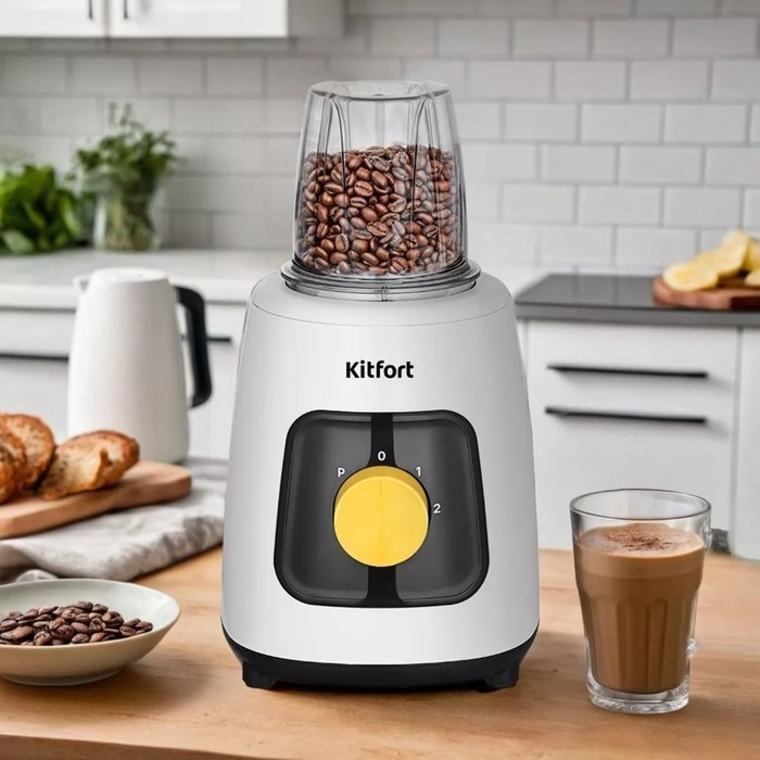 Блендер Kitfort KT-3517, стационарный, 600 Вт, 1.5/0.05 л, 2 скорости, бело-чёрный