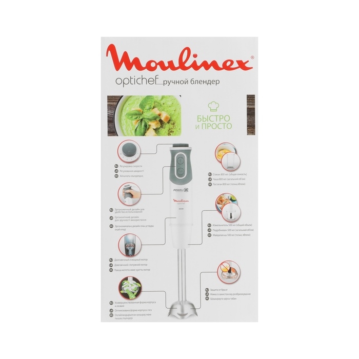 Блендер Moulinex DD641132, погружной, 800 Вт, 0.5 л, 10 скоростей, режим "турбо", белый