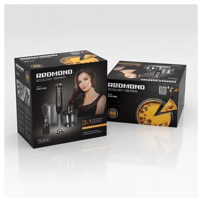 Плавная регулировка скоростиСкорость вращения насадок в основном режиме — от 8800 до 13200 об/мин. Постепенно увеличивайте число оборотов, чтобы получить наилучший результат — гладкое тесто без комочков, однородное фруктовое пюре и густую белковую пену. Чтобы справиться с жесткими овощами или получить пену с острыми пиками, используйте блендер в режиме «Турбо» (15000 об/мин). Подобрать подходящую скорость легко с помощью регулятора на ручке прибора.БлендерПогружной блендер качественно обрабатывает ингредиенты: вращающийся нож мелко рубит и одновременно перемешивает их. С блендером удобно готовить крем-супы, фруктовые и овощные смузи, смешивать молочные и спортивные коктейли, а также делать соусы, паштеты и муссы.МиксерЧтобы использовать прибор как миксер, достаточно установить на рукоятку комплектную насадку-венчик. Она быстро и тщательно взобьет яйца и сливки, придаст кремам и суфле воздушность.ИзмельчительВ компактной чаше-измельчителе с острым S-образным ножом можно за несколько минут нарубить овощи для супа и заготовок или перемолоть орехи для салата или бисквита.Стакан для смешиванияДля наиболее комфортного и аккуратного использования в комплект RHB-2998 включен в глубокий стакан для смешивания объемом 700 мл.Надежная защита двигателяВ случае критической нагрузки или перегрева мотора прибор автоматически отключается, предотвращая возможную поломку.Блендер REDMOND — большие возможности в компактном приборе!Отзывы