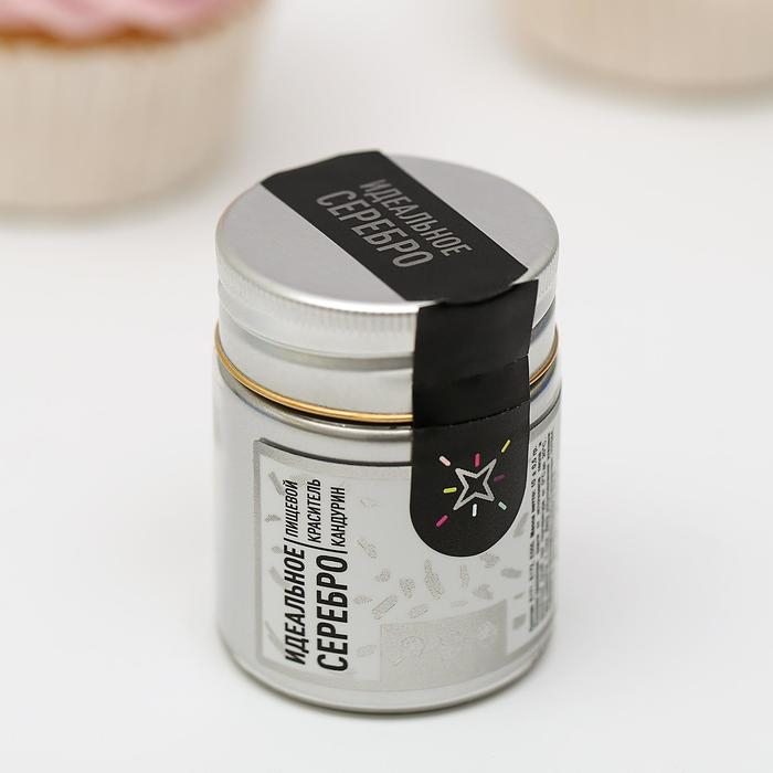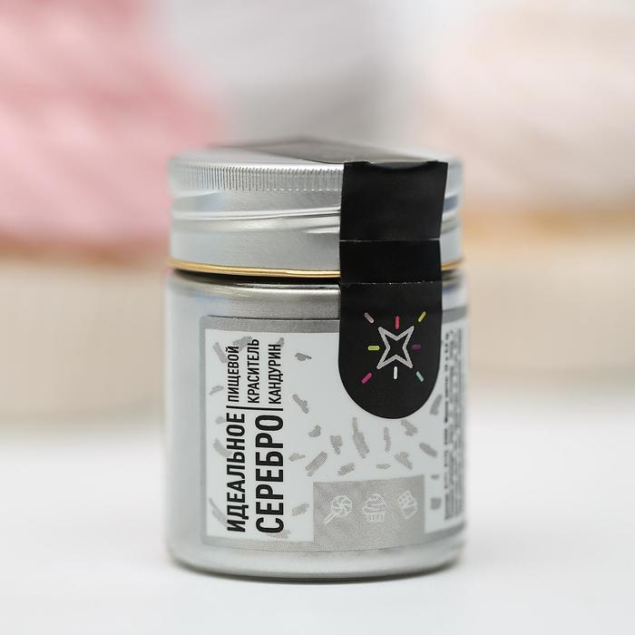 Кандурин MIXIE «Настоящее серебро» является биологически активным соединением из силиката или слюды – продуктов растительного происхождения, а также устойчив к воздействию температур, поэтому он не потеряет свой цвет и текстуру. Кандурин — плотный перламутровый краситель, который можно использовать для декора и поверхностного нанесения на все виды кондитерских изделий.