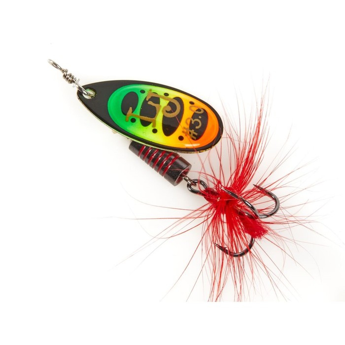 Главный элемент блесны – вращающийся лепесток. Он лёгкий, сделан из латуни, обладает хорошими динамическими показателями при вращении в воде, что позволяет делать проводку приманки на минимальной скорости. Лепесток «заводится» сразу, как только блесна начинает движение. Лепесток окрашен с двух сторон. С какой бы стороны хищная рыба не смотрела на приманку, расцветка остаётся одинаковой и привлекательной, это повышает интерес к блесне.