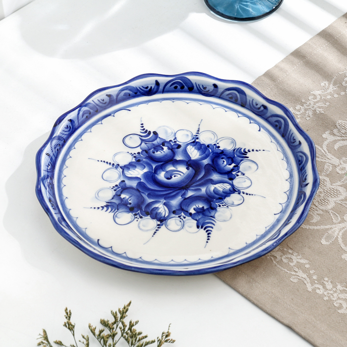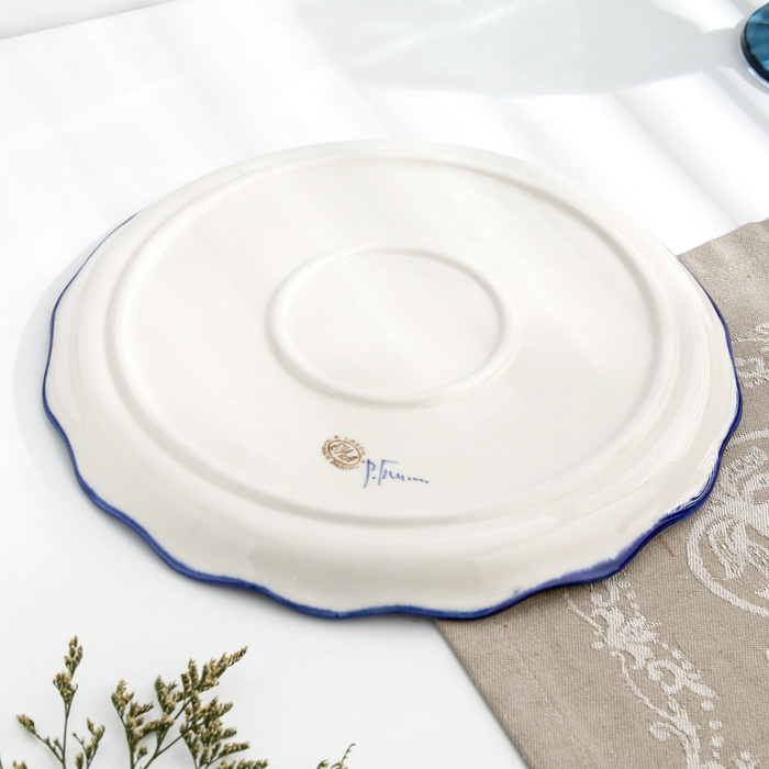 Блинница Риштанская Керамика "Цветы", 37 см, синий