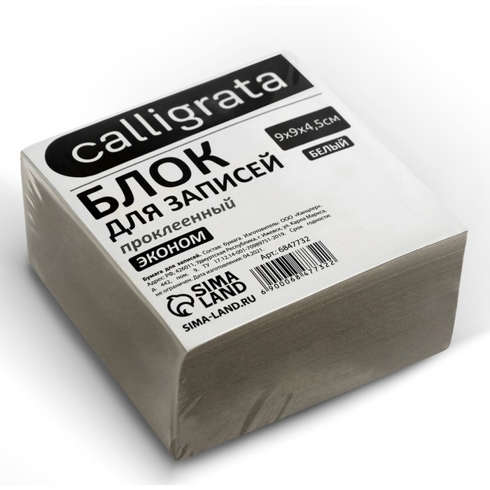 Блок бумаги д/записей на склейке 9*9*4,5 Calligrata белый, 55г/м2, белиз 70-80%