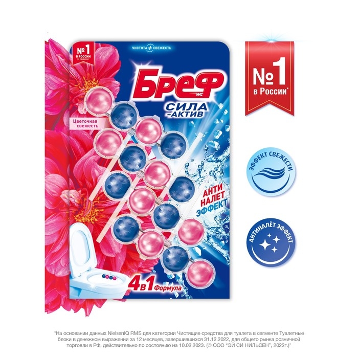 Бреф Сила-Актив придает антиналет эффект при каждом смывании.