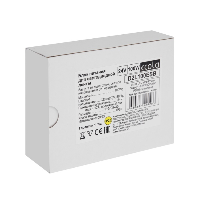 Блок питания Ecola для светодиодной ленты 24 В, 100 Вт, IP20