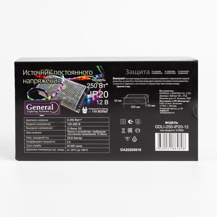 Блок питания General для светодиодной ленты 12 В, 250 Вт, IP20