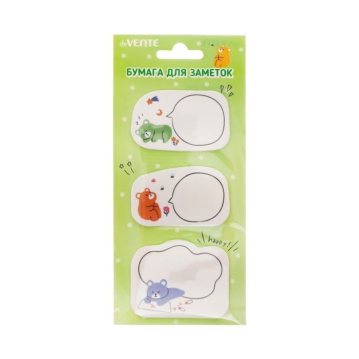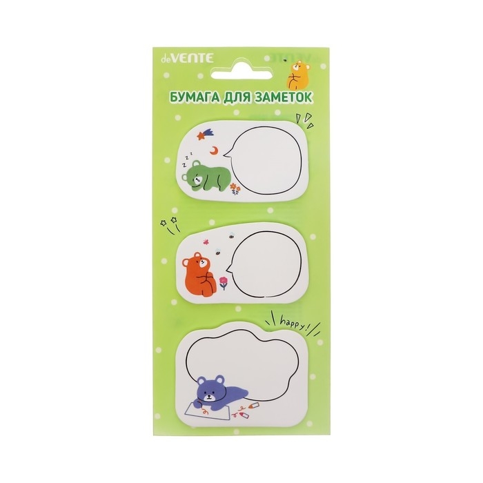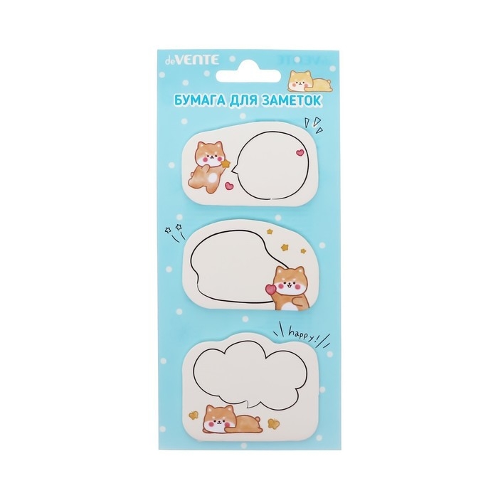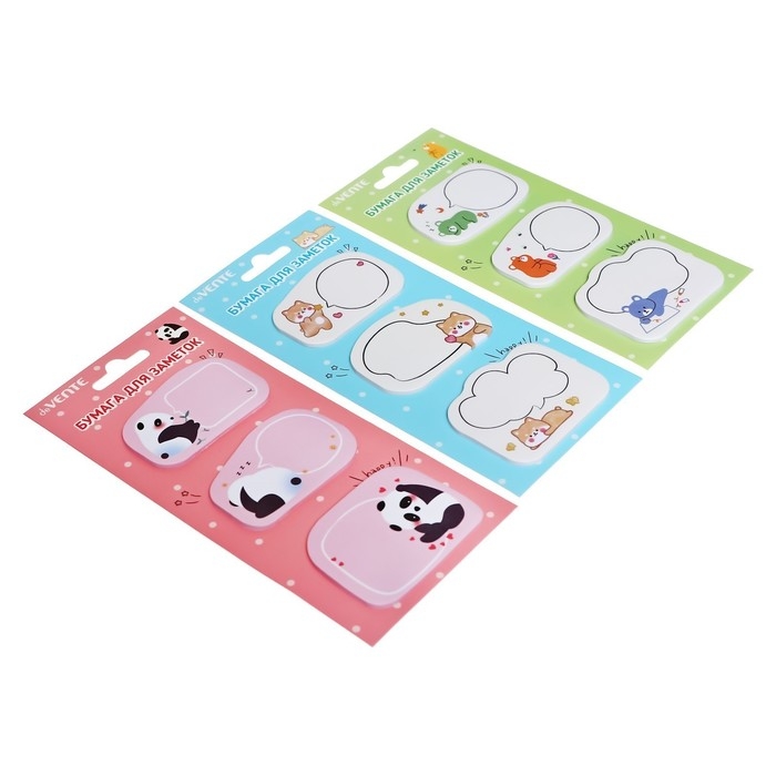 Набор клейкой бумаги для заметок "deVENTE. Shiba, Panda, Bear" 55x55 мм, 3x20 листов, офсет 80 г/м², печать 4+0, ассорти форм, 3 дизайна, в картонном блистере и пластиковом пакете с европодвесом