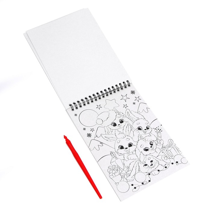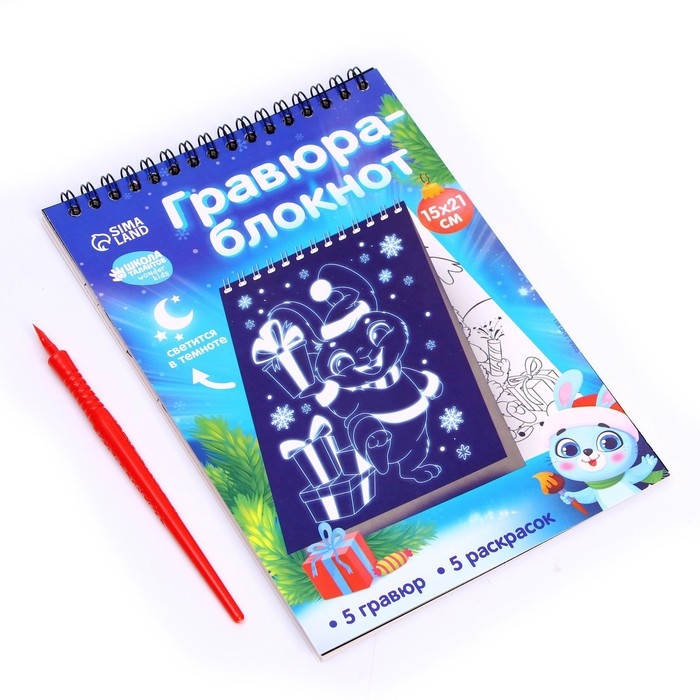 Блокнот лунная гравюра - раскраска на новый год «С Новым годом» Зайчики, 14.8х21 см