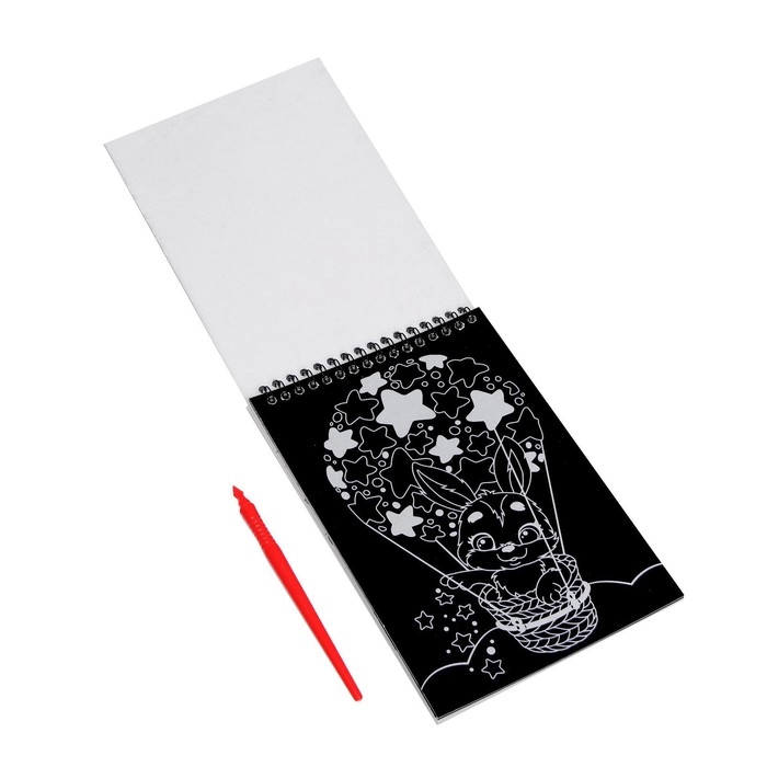 - 5 листов, покрытых чёрным слоем, на который нанесён контур рисунка. Процарапайте его с помощью штихеля, и сквозь контуры проступит сияющий разноцветный слой. Подержите рисунок под лампой или оставьте под дневным светом. После этого рисунок засияет в темноте.