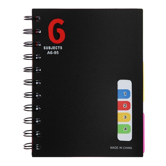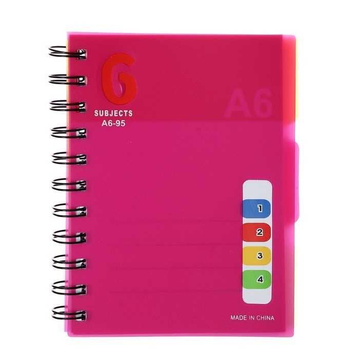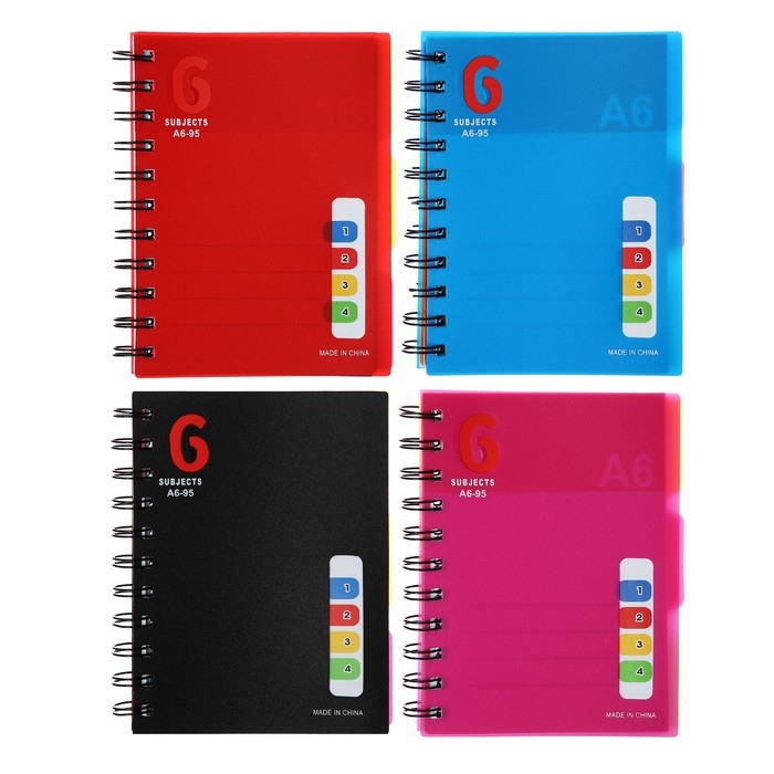 Блокнот на гребне А6, 100 листов, линия, обложка пластик, с разделителями, классика, МИКС