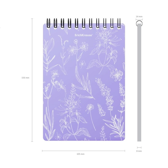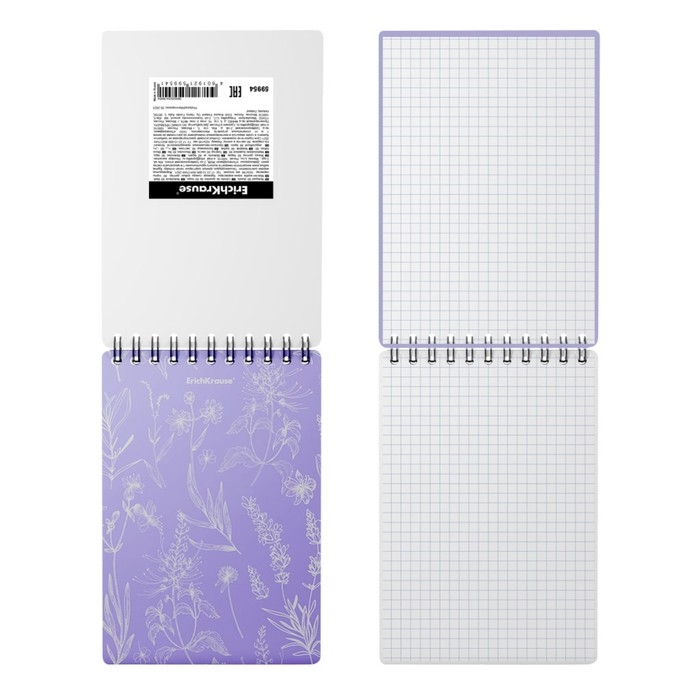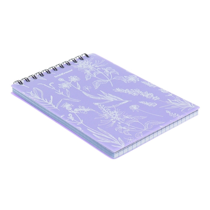 Блокнот на спирали А6, 80 листов, клетка , ErichKrause "Lavender", пластиковая обложка шелкография, блок офсет белизна 100%