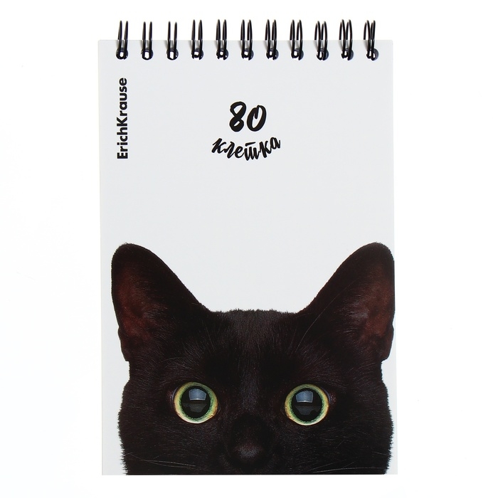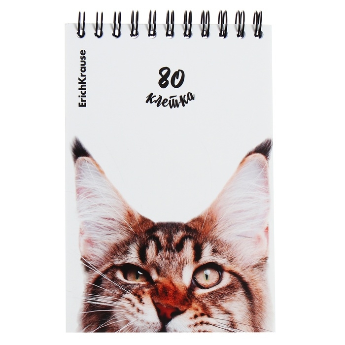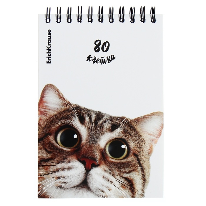 Блокнот на спирали А6, 80 листов, клетка, ErichKruase "Котики", картонная обложка, блок офсет, белизна 100%, МИКС