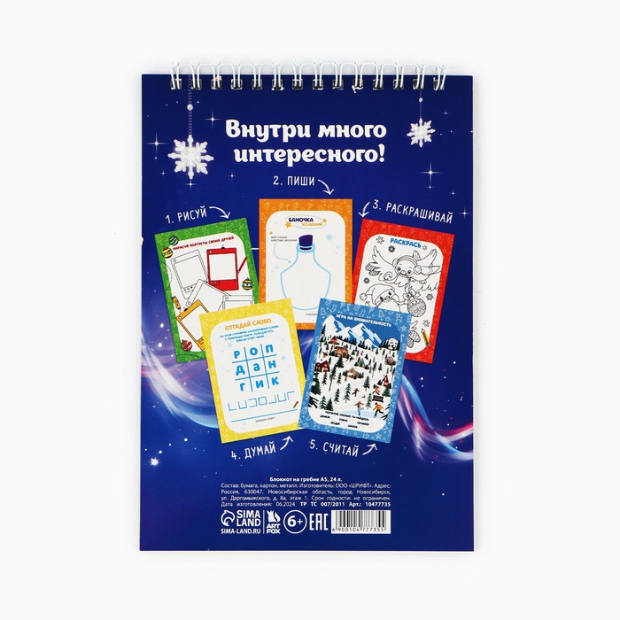 Блокнот новогодний с заданиями на гребне «С Новым годом! Символ года», формат А5, 24 листа