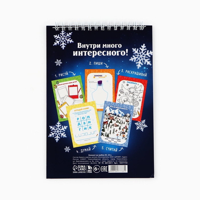 Блокнот новогодний с заданиями на гребне «Всё сбудется, загадывай», формат А5, 24 листа