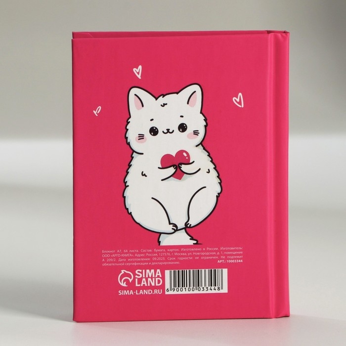 Блокнот в твердой обложке А7, 64 л «С 8 марта. Кот»