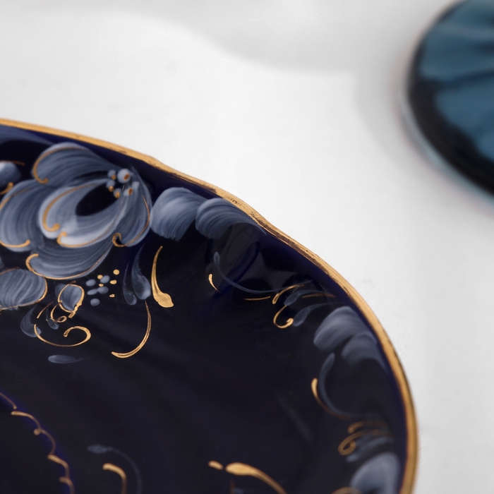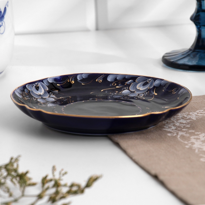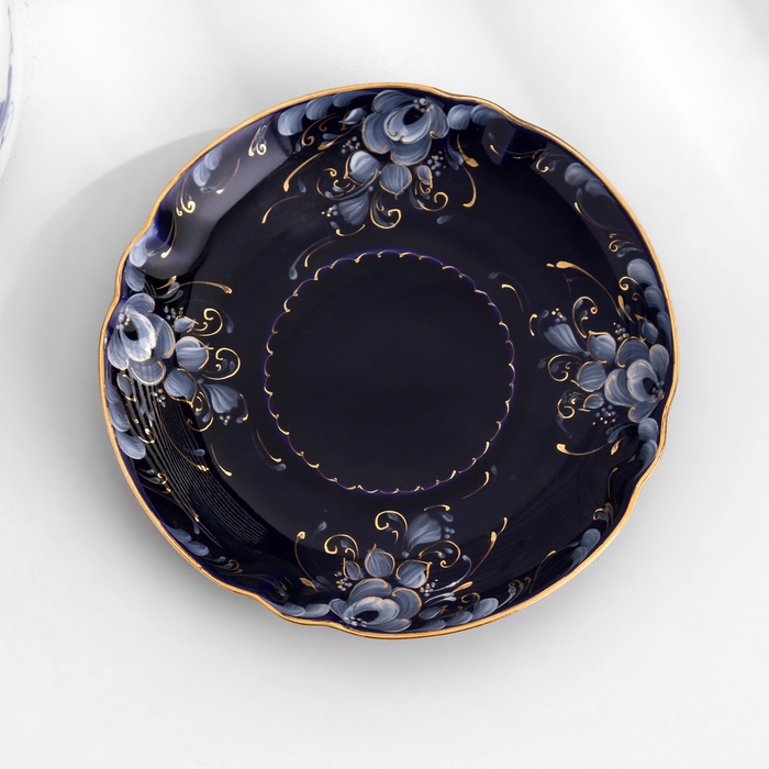 Блюдце "Весна", d-14,5см, кобальтовая глазурь