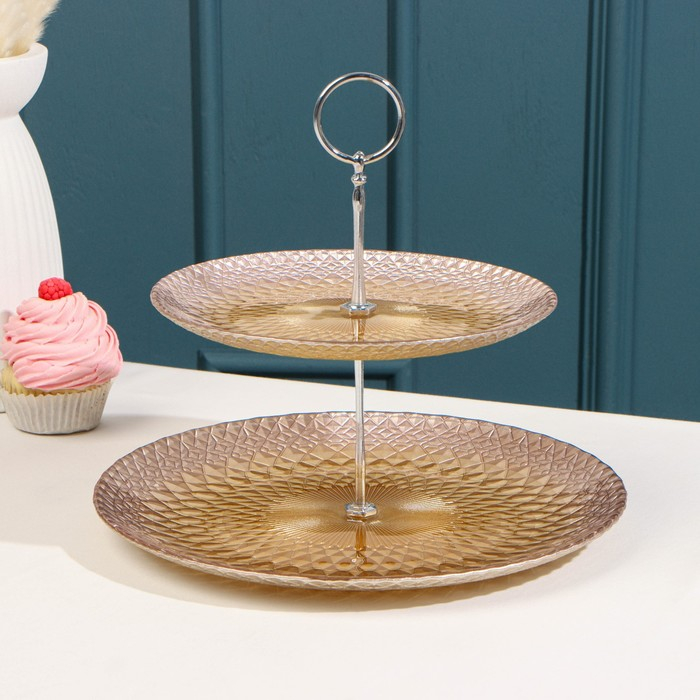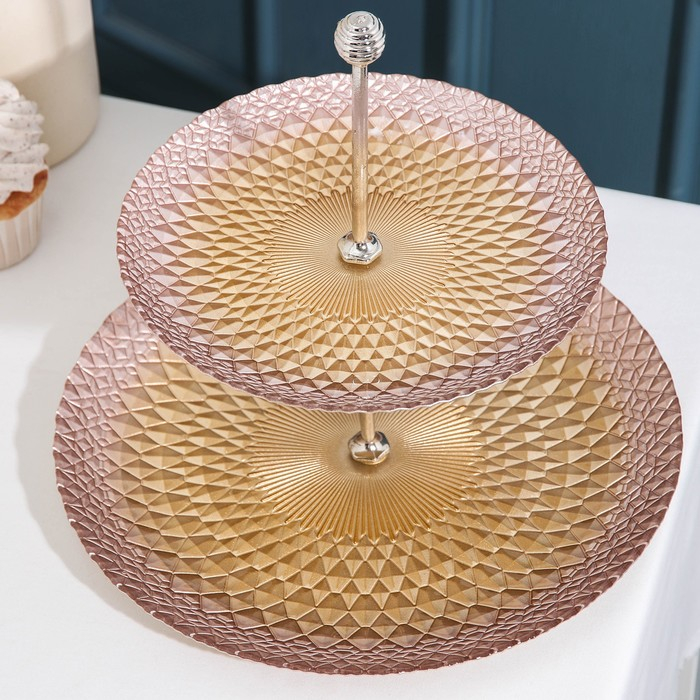 Блюдо 2-х ярусное «Барокко», d=21/28 см, цвет золотой с розовый