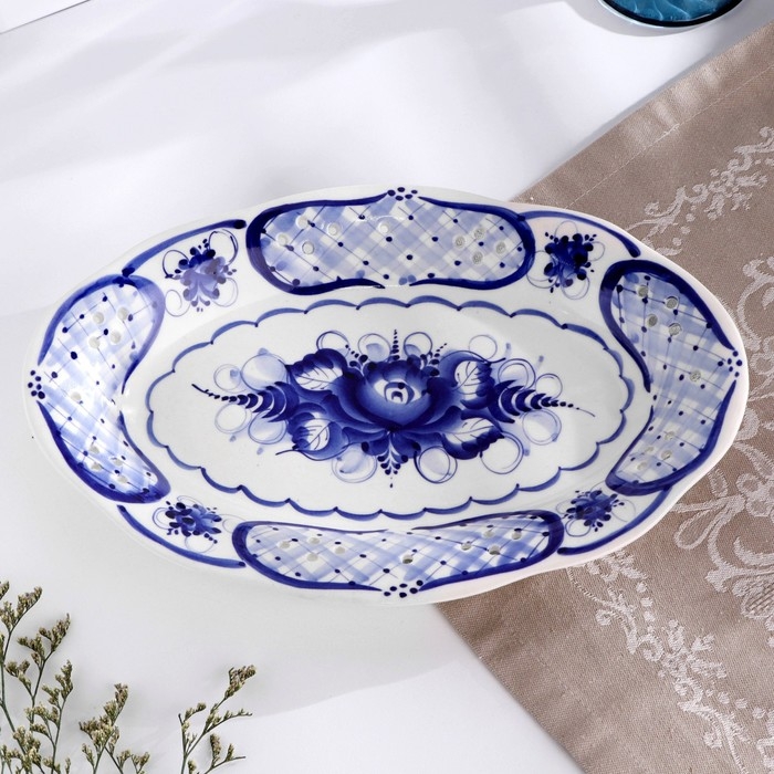 Блюдо "Ажурное", гжель, фарфор, 30х20 см