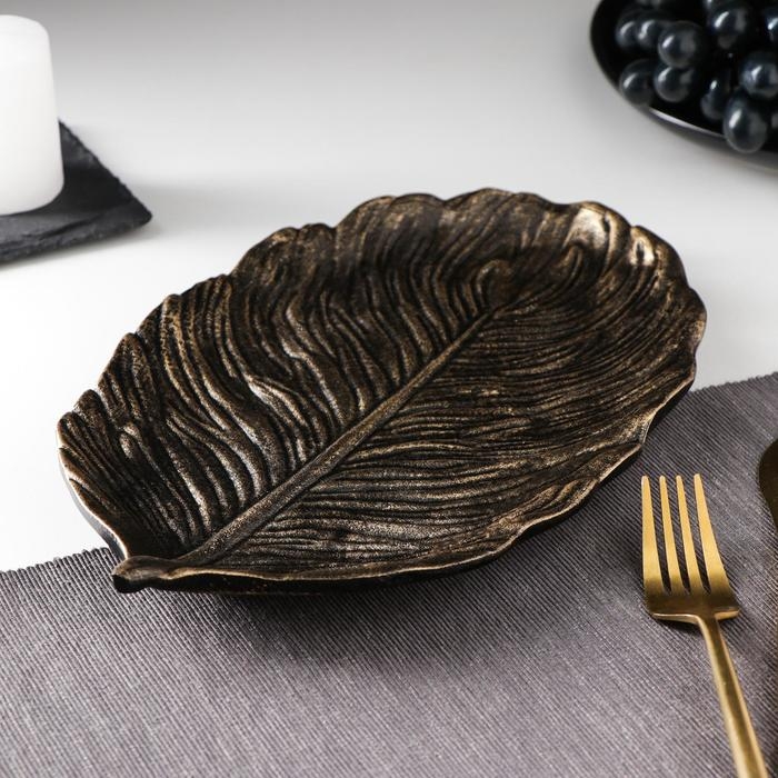 Блюдо для фруктов Доляна «Лист», 30×18×2 см, цвет бронзовый