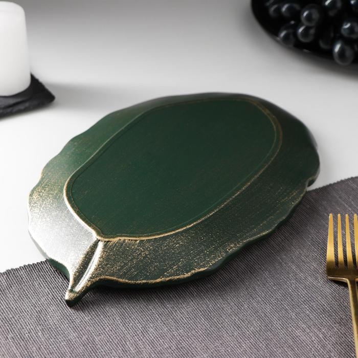 Блюдо для фруктов Доляна «Лист», 30×18×2 см, цвет золотой с зелёным