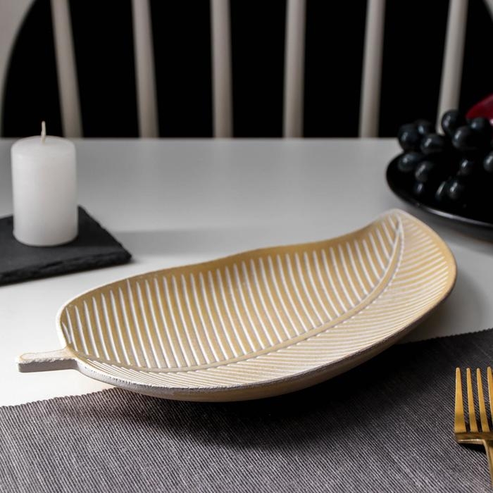 Блюдо для фруктов Доляна «Золотой лист», 31,5×17×2 см, цвет золотой с белым