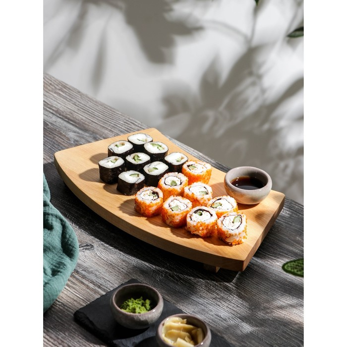 Блюдо для подачи на ножках Adelica «Евразия», для суши и роллов, 35×18×5,5 см, массив берёзы