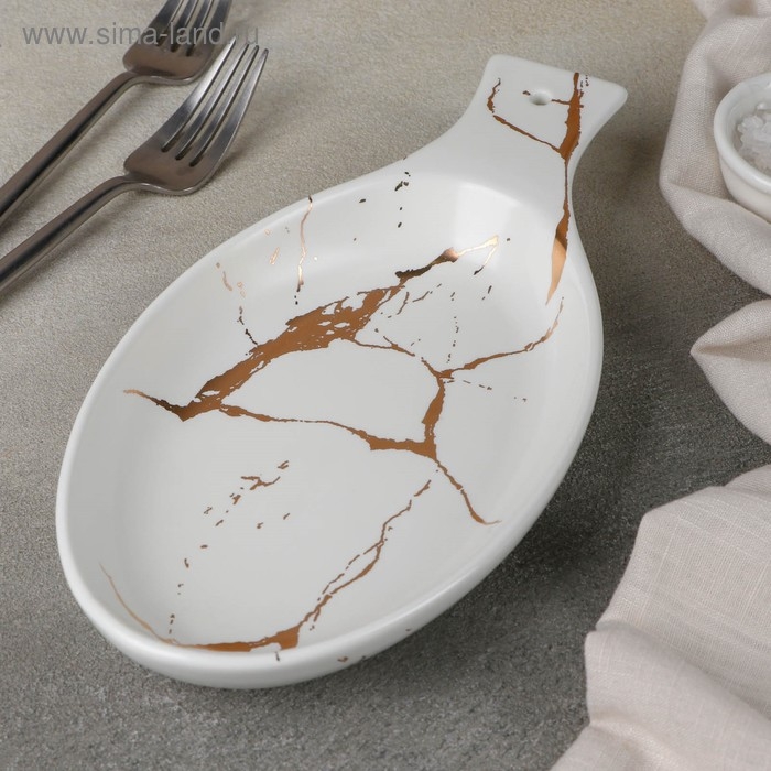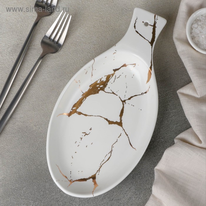 Блюдо фарфоровое для подачи «Марбл», 25,2×12,7×3 см, цвет белый