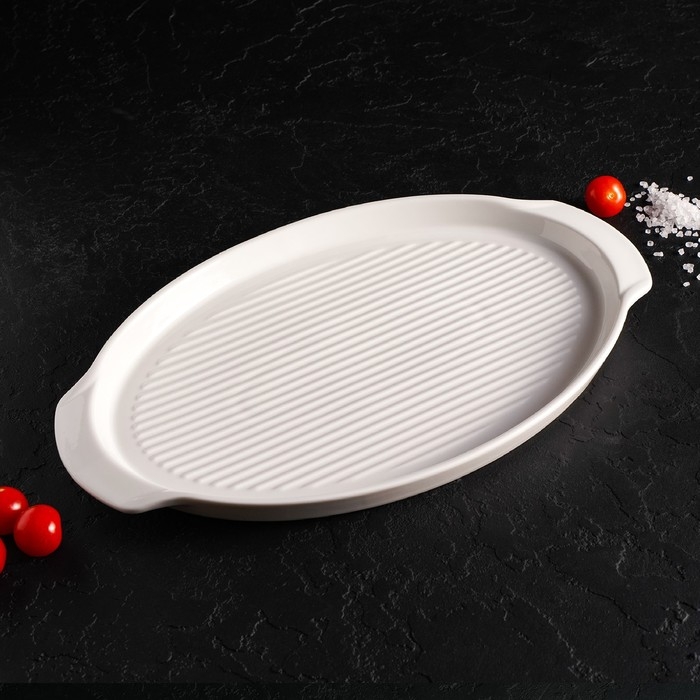 Блюдо фарфоровое для запекания Magistro «Бланш», 33×21×2,5 см, цвет белый