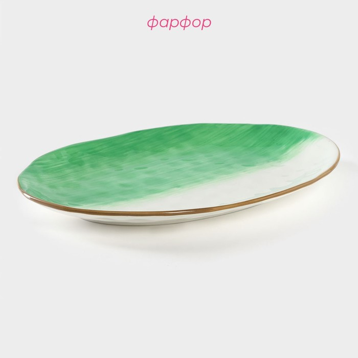 Блюдо фарфоровое Доляна «Космос», 31,5×22 см, цвет зелёный