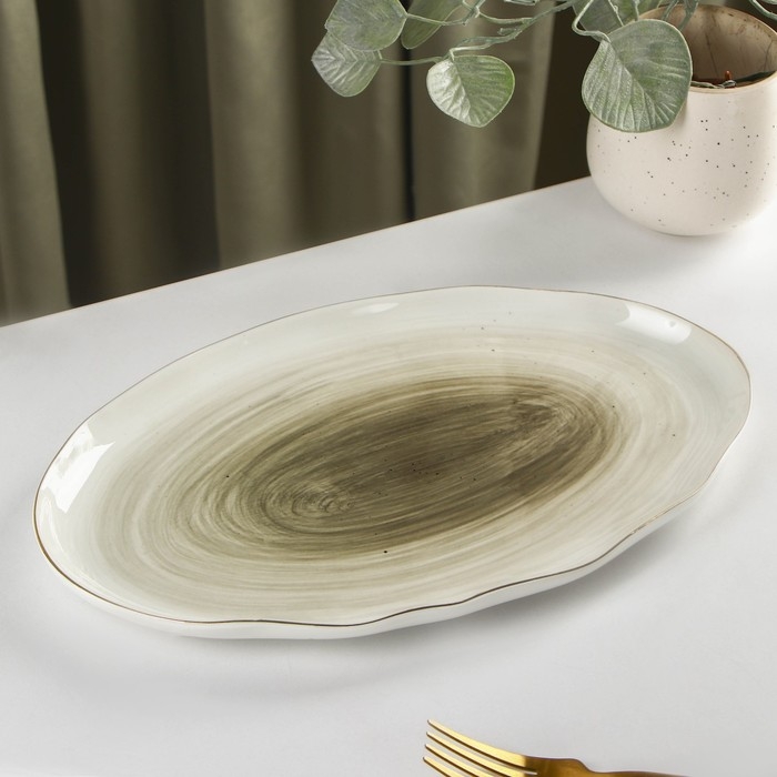 Блюдо фарфоровое Доляна «Млечный путь», 29,5×17,5 см, цвет серый