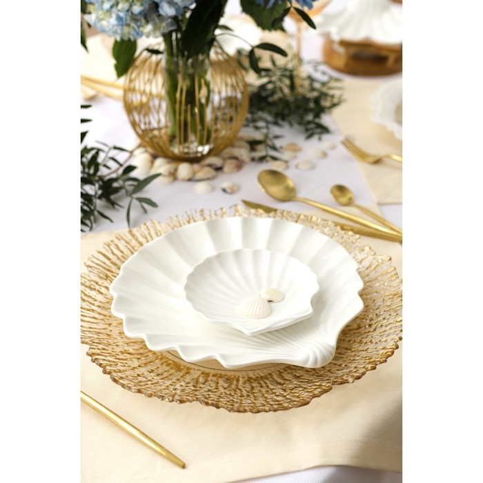 Блюдо керамическое для подачи «Морская ракушка», 27 х 25 см, цвет белый