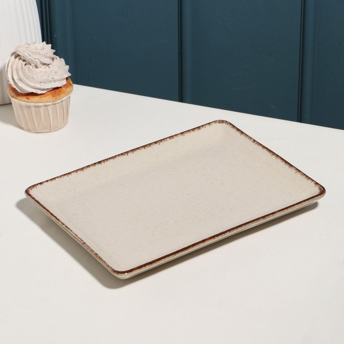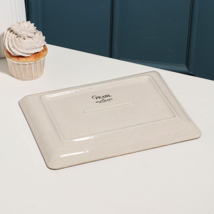 Блюдо фарфоровое Pearl, 23×17см, бежевое