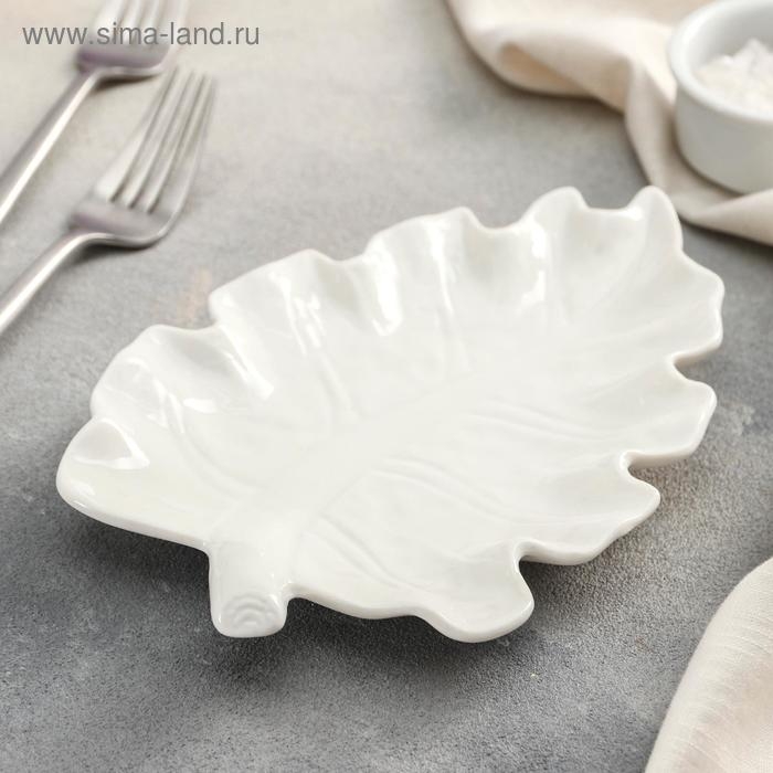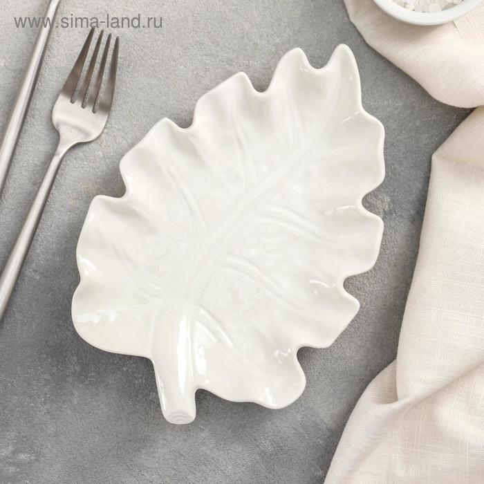 Блюдо керамическое «Лист», 20×14 см, цвет белый