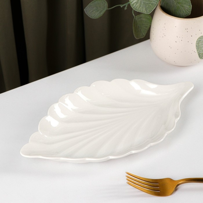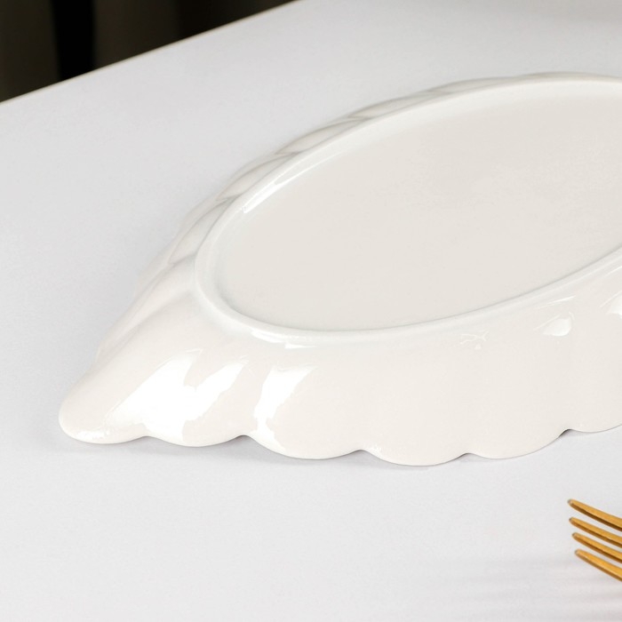 Блюдо керамическое «Лист», 25,5×14,5 см, цвет белый