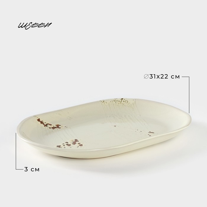 Блюдо керамическое овальное «Шебби», 600 мл, 31×22 см, h= 3 см