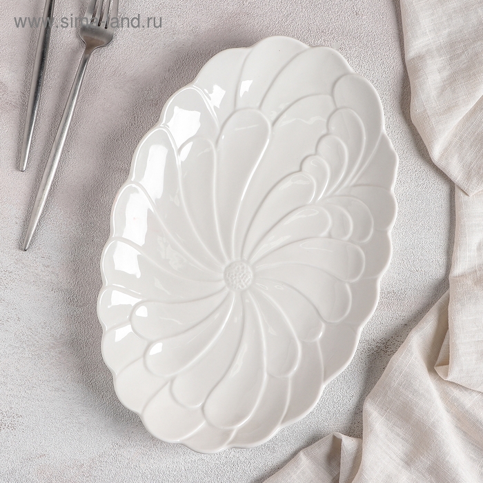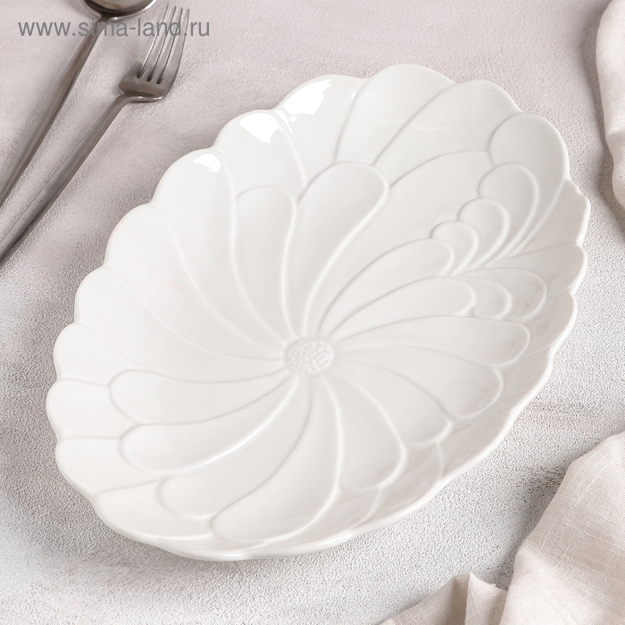 Блюдо керамическое «Ромашка», 32×20×3 см, цвет белый