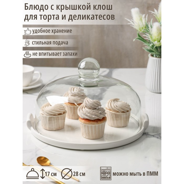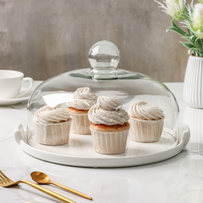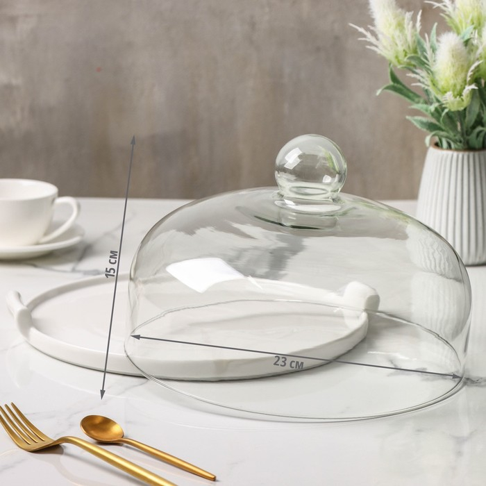 Блюдо керамическое с крышкой-клош для десертов Valencia, 28×25×17 см, цвет белый
