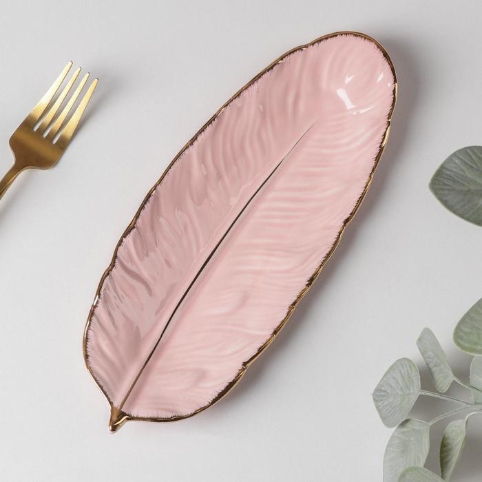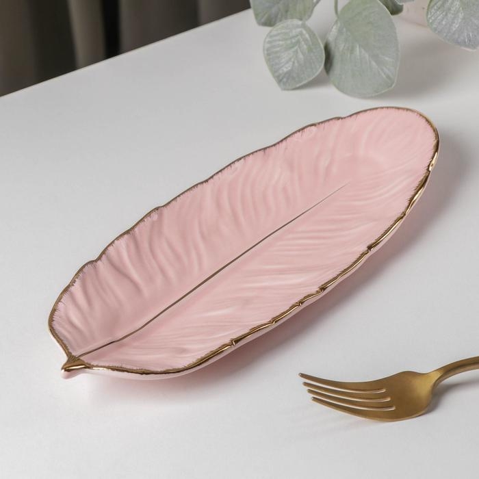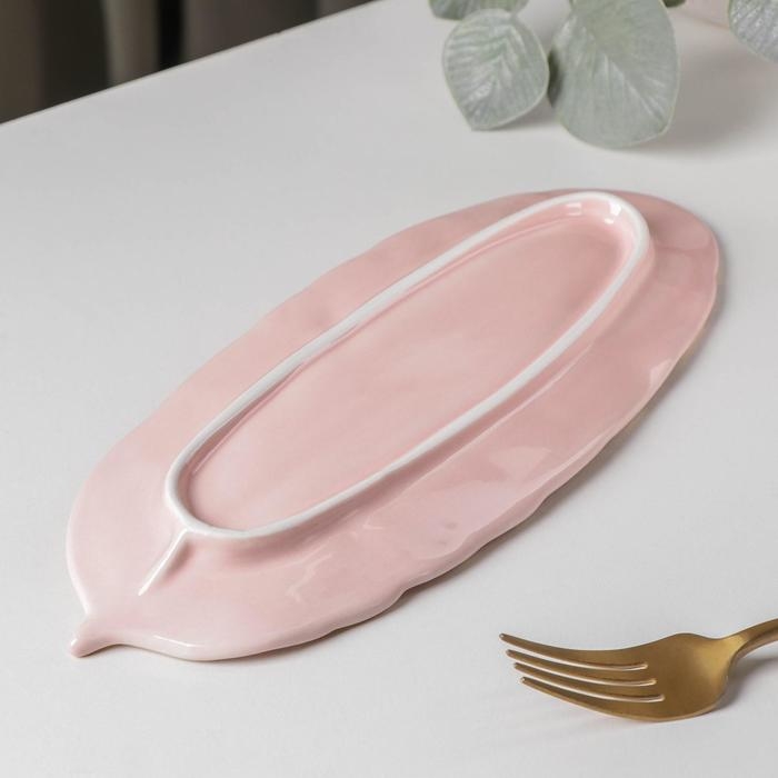 Блюдо керамическое сервировочное «Рапсодия. Лист», 25×10×2 см, цвет розовый