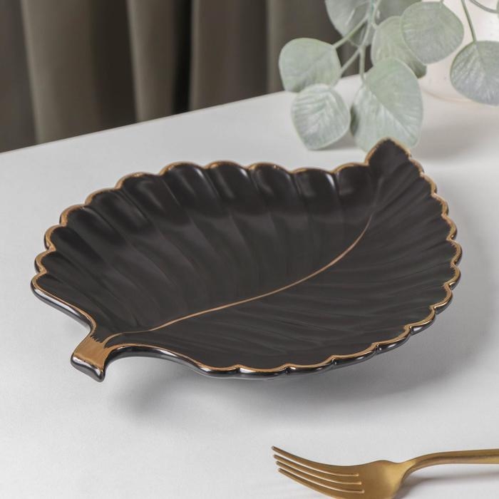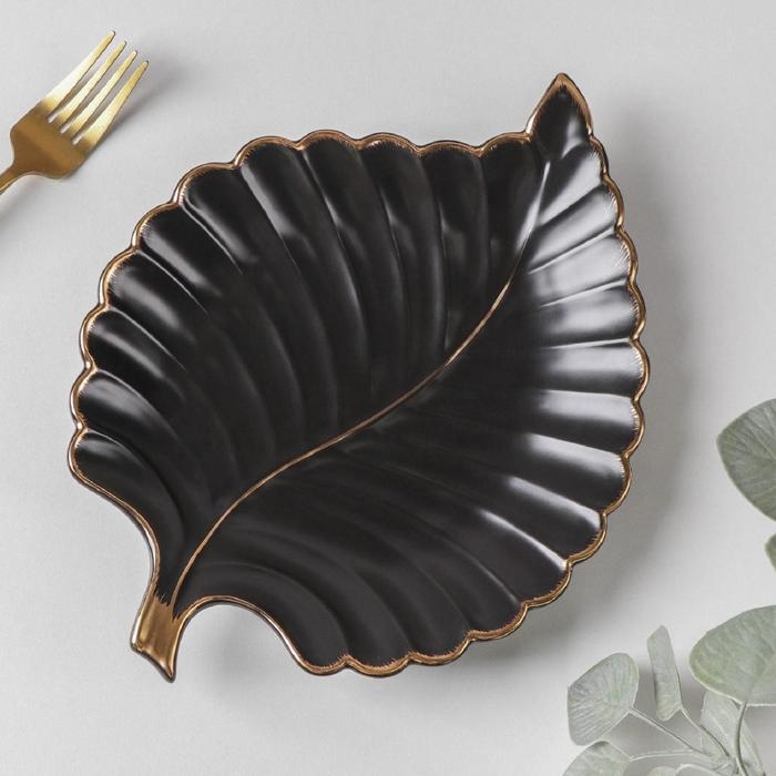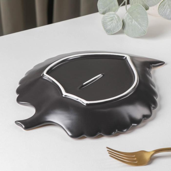 Блюдо керамическое сервировочное «Рапсодия. Лист», 26,5×20,5×2,5 см, цвет чёрный
