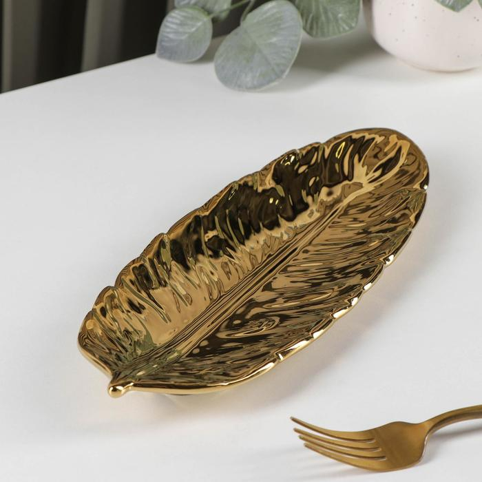 Блюдо керамическое сервировочное «Золотой лист», 26×10 см, цвет золотой