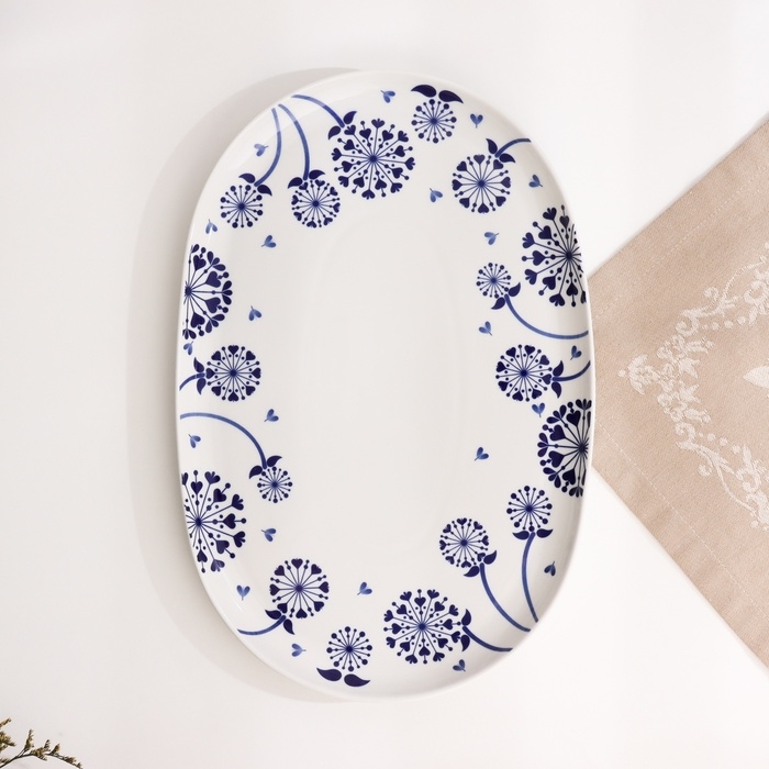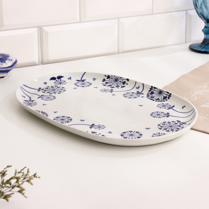 Блюдо овальное "Блюз одуванчик", 205х315х20мм, нео гжель