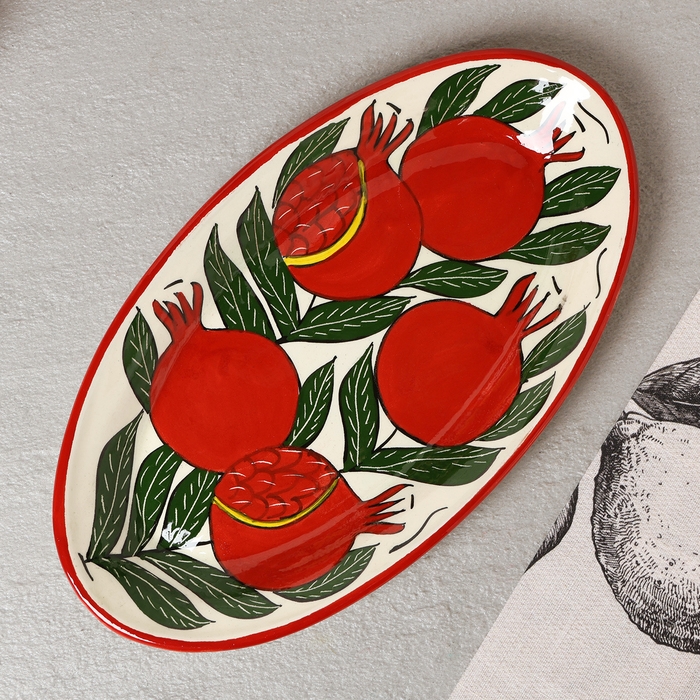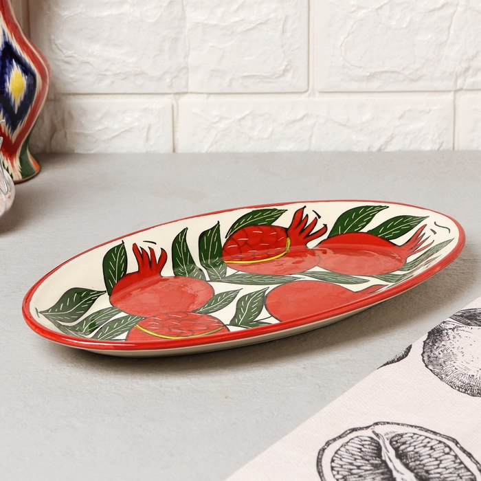 Блюдо Риштанская Керамика "Гранаты", 29,5см, разноцветное, овальное