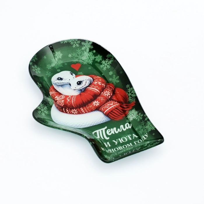 Блюдо руковица новогоднее стеклянное «Тепла и уюта», 22,5 × 14 × 2 см